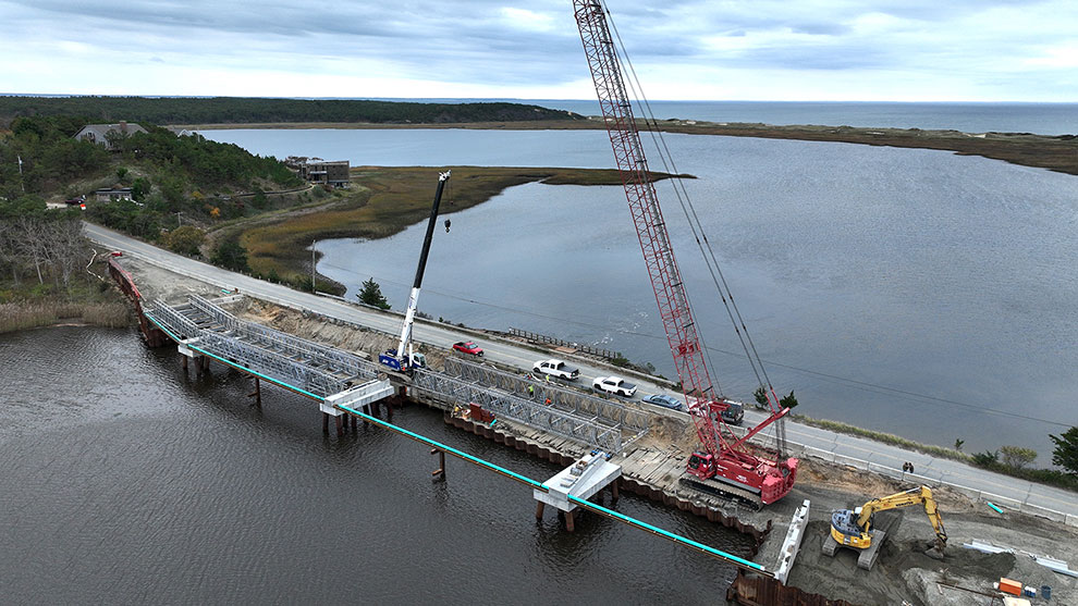 The existing raised roadway across the Herring River salt marsh has limited waterway openings that cut off the fragile ecosystem upstream from the Cape Cod Bay from the water that it needs to thrive. To correct this, this entire roadway embankment will be replaced with a combination bridge and water control structure with a 160-foot-span at the mouth of a coastal river in a manner that will allow National Park Service scientists to control flows into the marsh system.